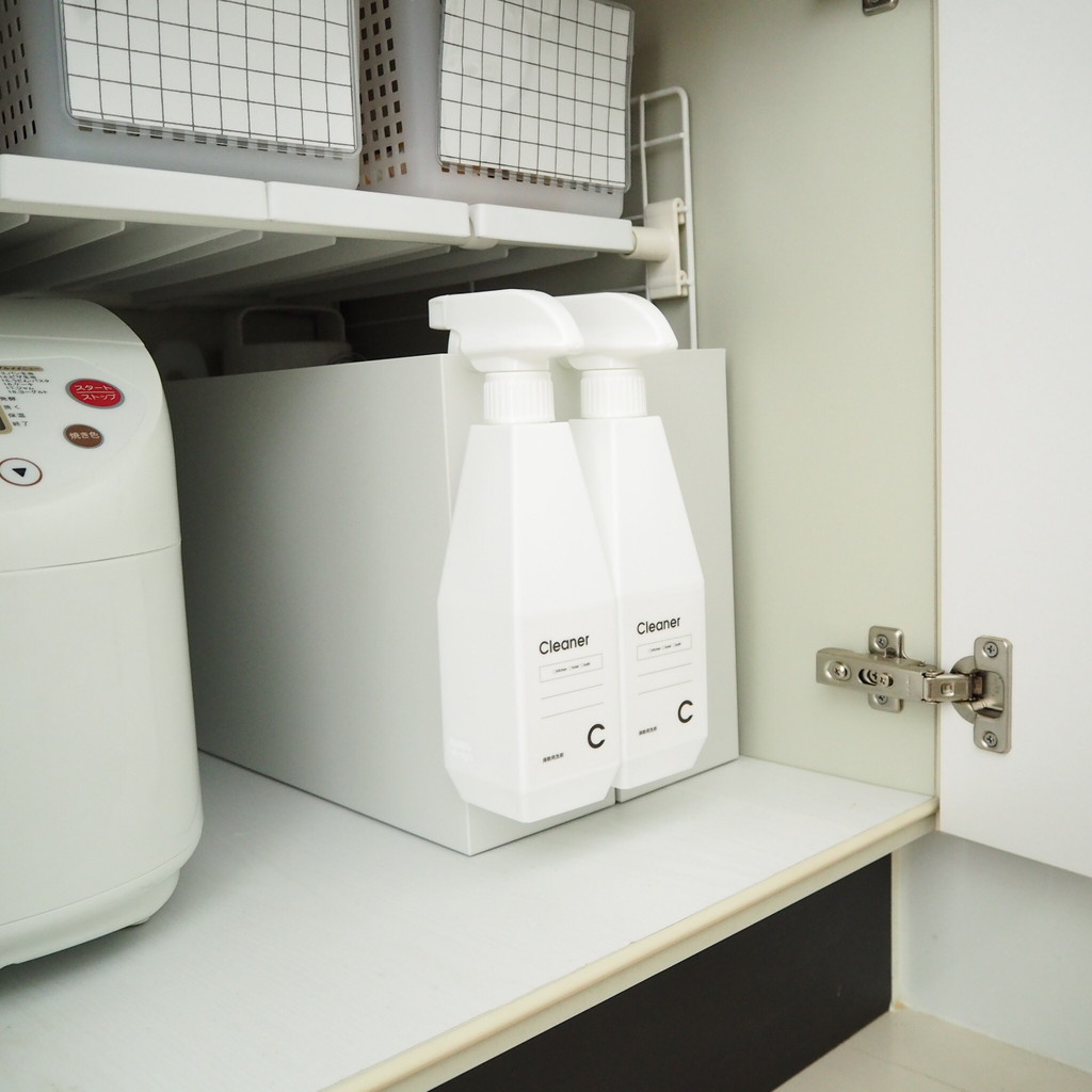 スプレーボトルはキッチンのコンロ下に収納しました
