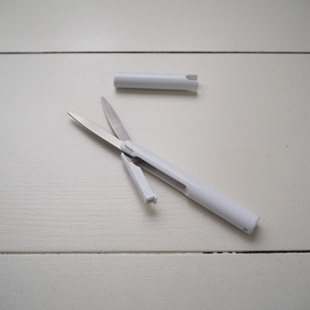 普通のはさみだとこのペンケース内で場所をとってしまうし