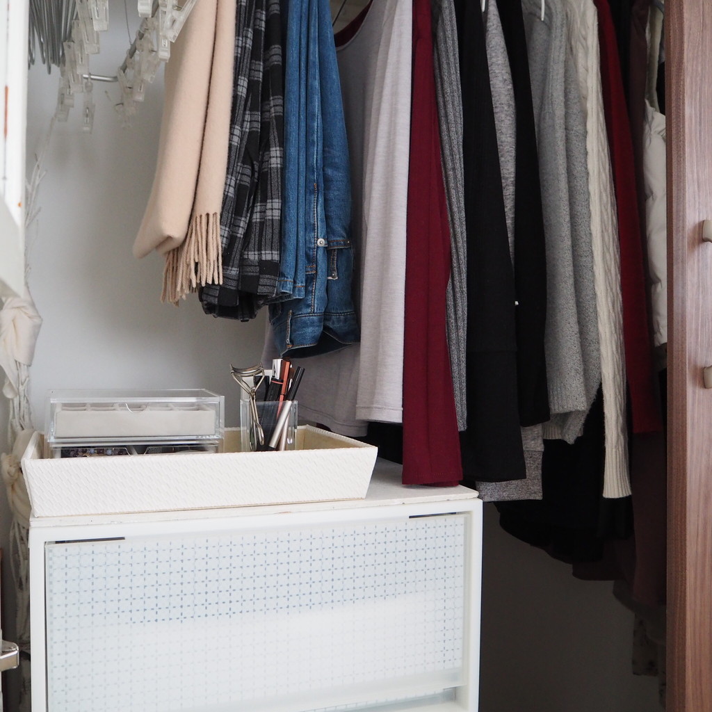 本当はまるで雑誌に出てくるようなまとまりのいいクローゼットに憧れるけど実際に使う分にはこういうことをする方が便利だったりします