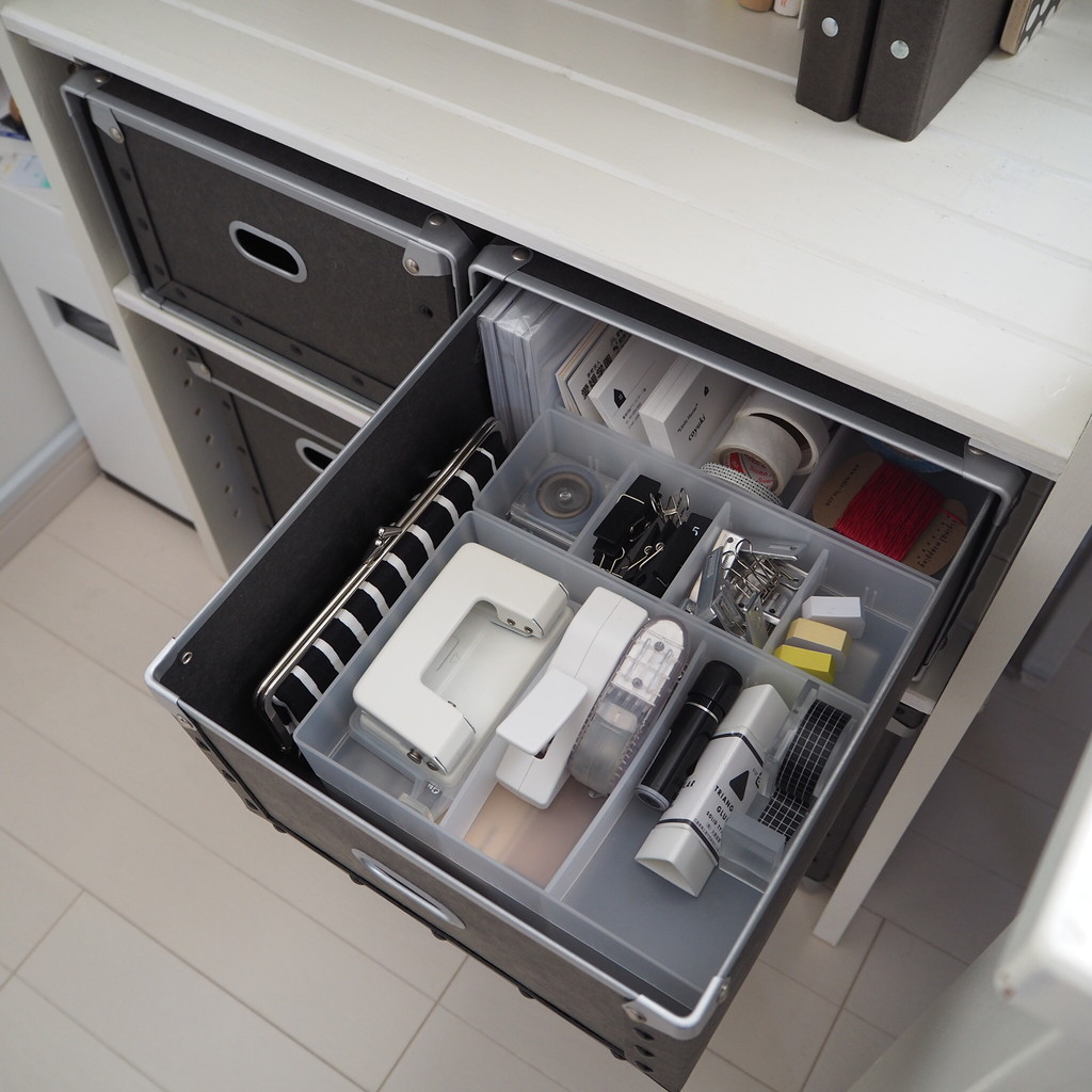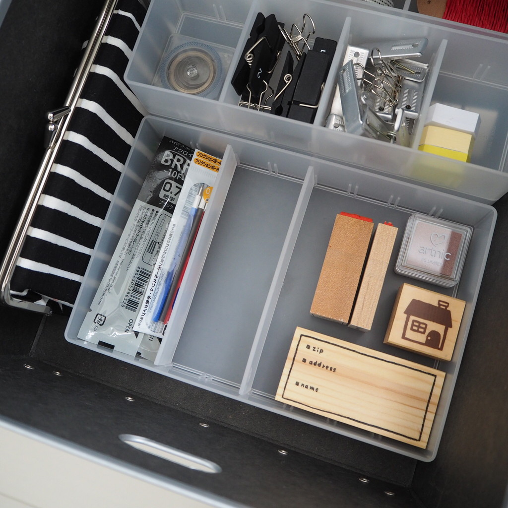 深さのある引出しなので仕切りケースは2段使い