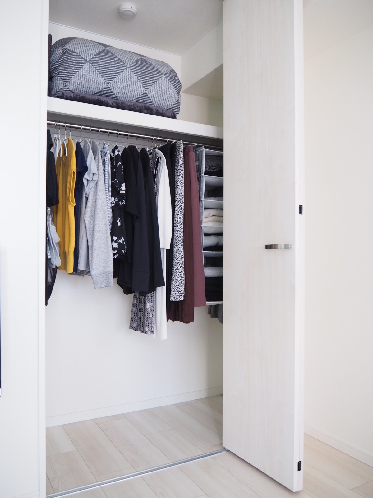 お仕事させていただいたお客様から我が家の収納を見たいと言っていただくこともあるんだけど、家族や友人を含めて、誰にでも公開しているクローゼットです。