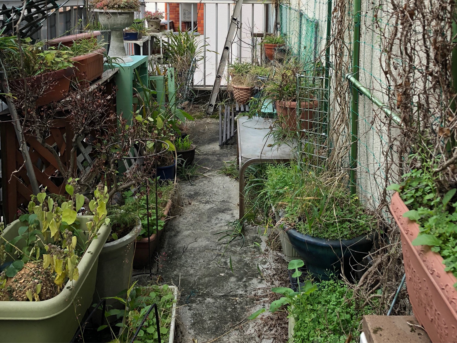 ちょこちょこと雨が降ったりしてベランダのもう片側の片づけが止まっていたんだけど、この数日いい天気に恵まれたし、今日も気持ちのいい作業日和!