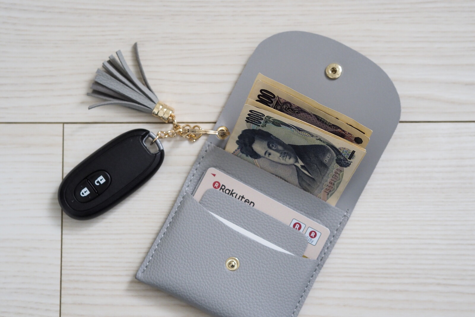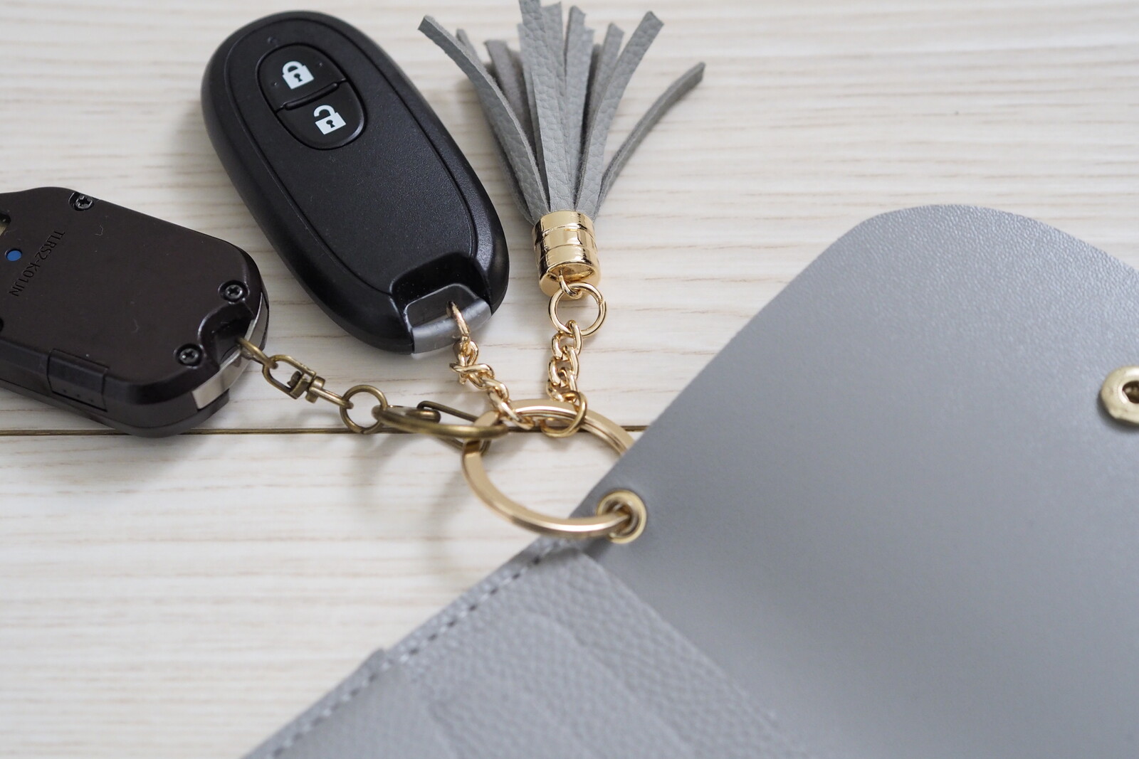 買い物に行くときはたいてい車なので、車のキーとお財布をセットにしました。