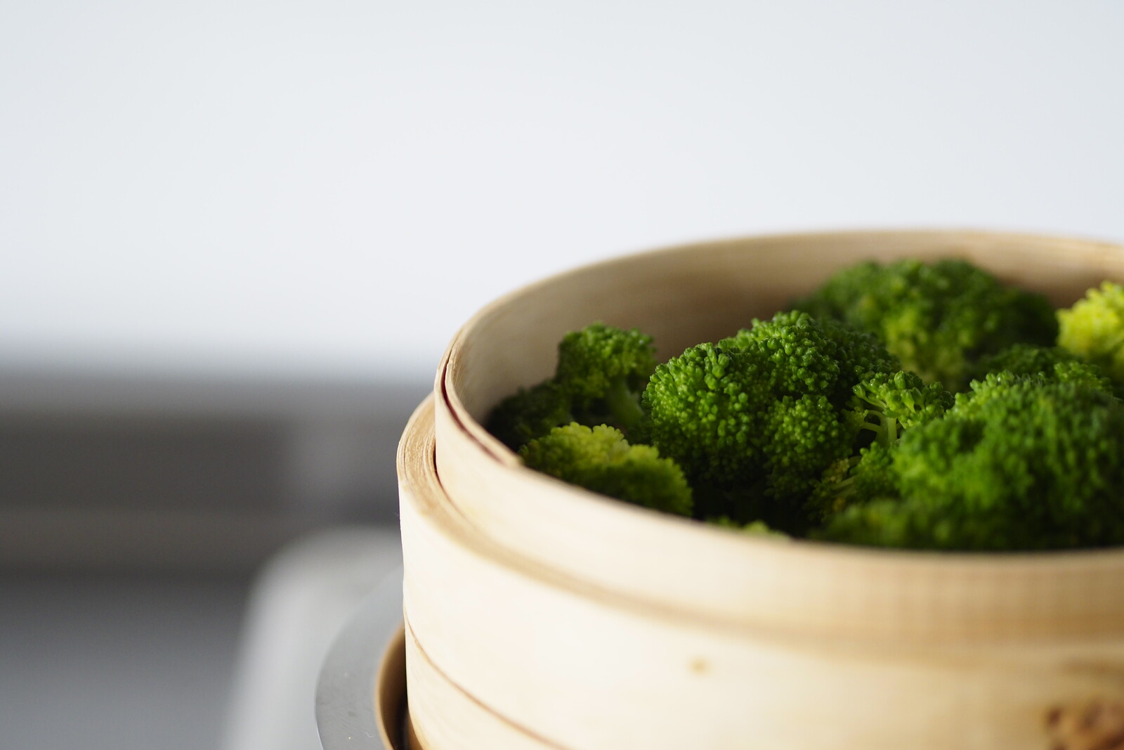 小分けしたブロッコリーを蒸し器に乗せて5分。