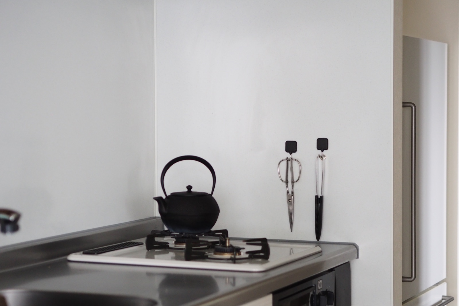 コンロ横にトングとキッチンハサミだけ