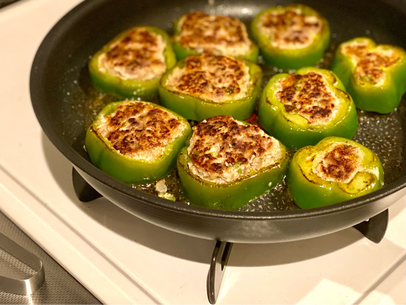 輪切りにしたピーマンに肉詰めするのがこのところ好みです。