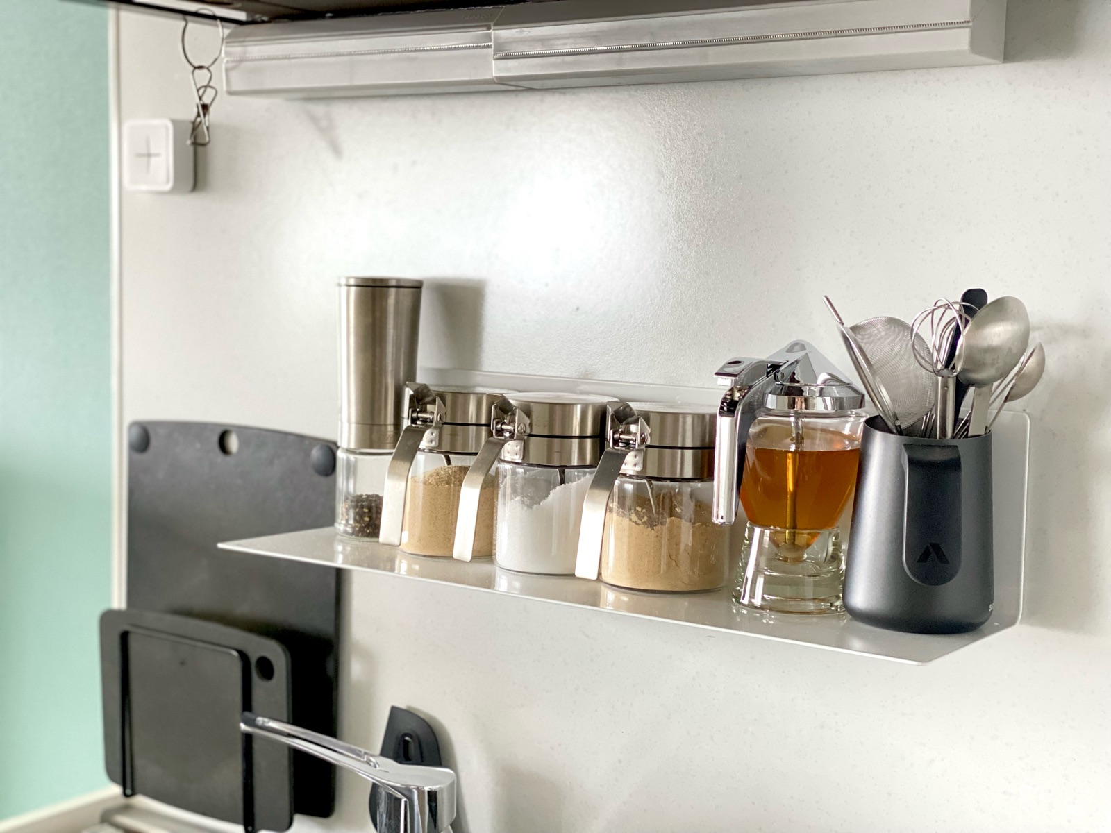キッチンツールやまな板、調味料など、今まで中にしまい込んでいたものたちを出しっぱなしにしてみたら、これがとても快適で。
