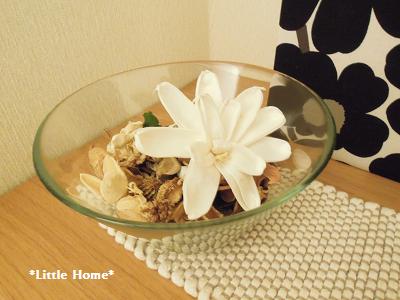 IKEAで買ってきたポプリとガラスの器。