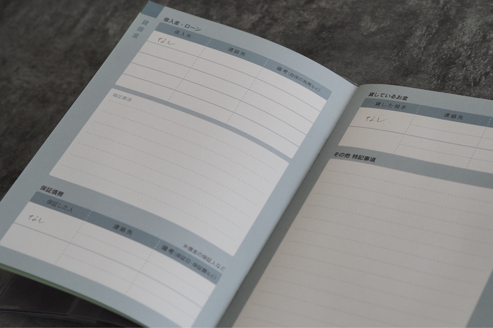 なし、なしと書き終えて、ササっと終わったので次のページ