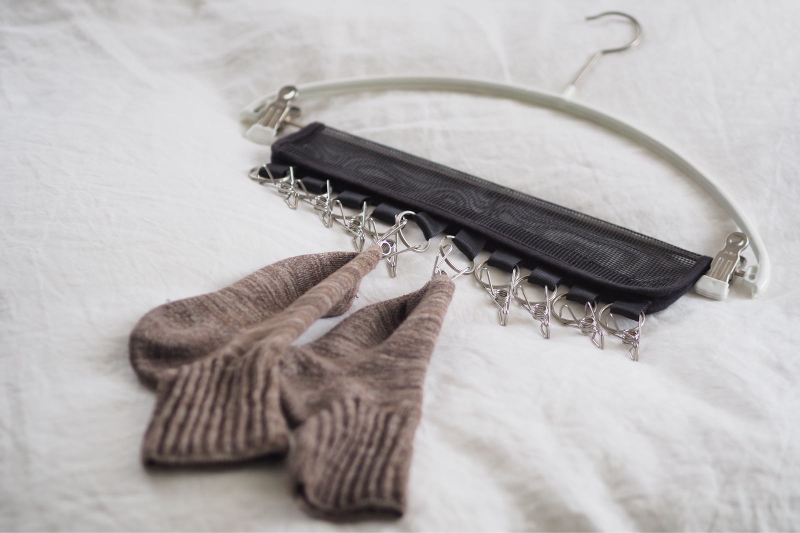 靴下やハンカチなどの洗濯物をこれに挟んで物干しポールへ