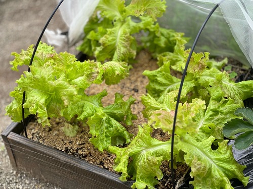 サニーレタスは葉だけをカットして収穫していますが、次から次へと新しい葉が出てきます。