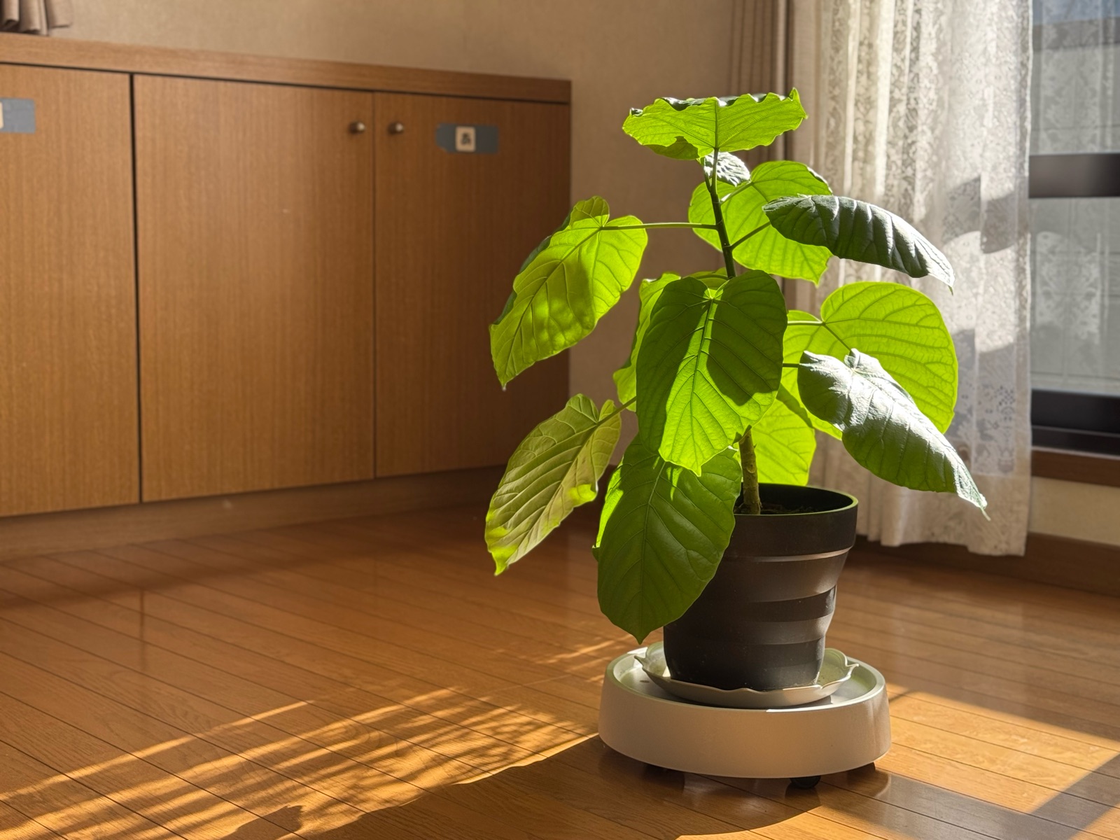 引っ越してきたときは葉が3枚しかなかったけれど、2階のあたたかさもあってかすくすく育ってくれています。