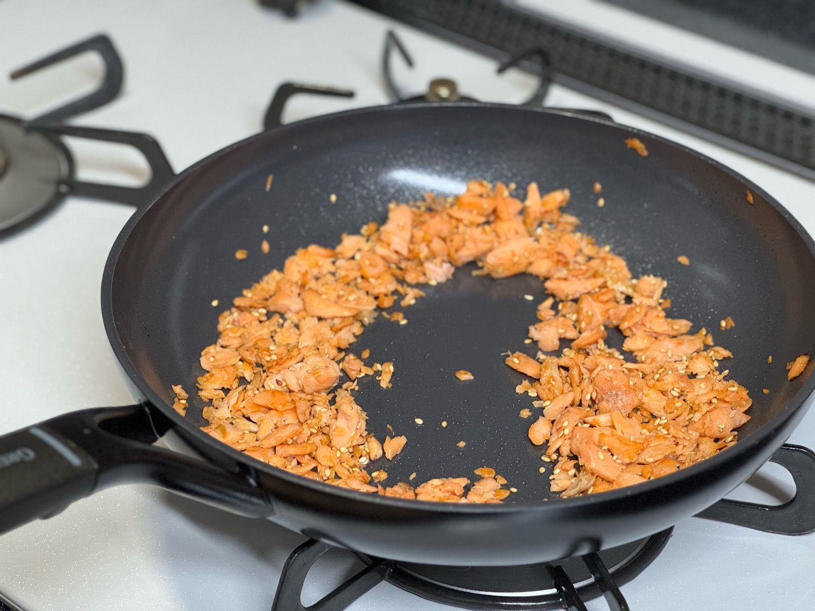 鮭フレークを作ったときも、 油なしでまったく問題なし。