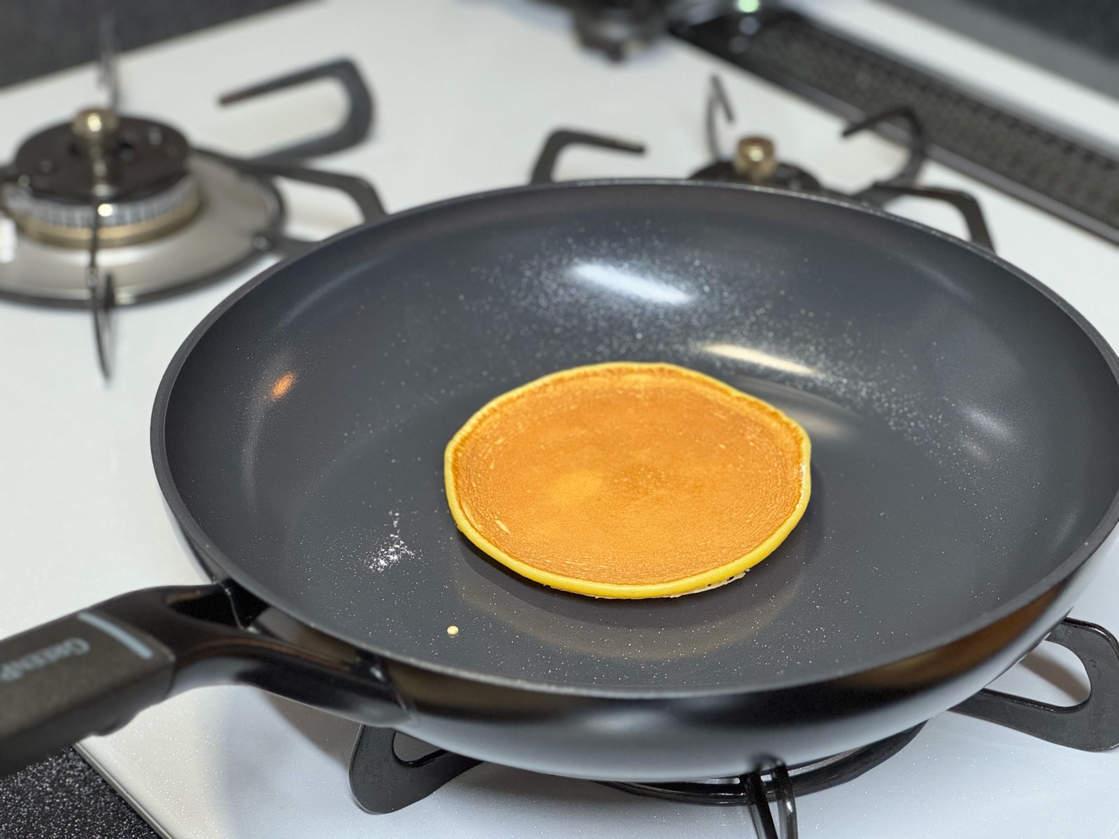 ※油をひかずに焼いたホットケーキ。くっつかず、後片付けもラク。