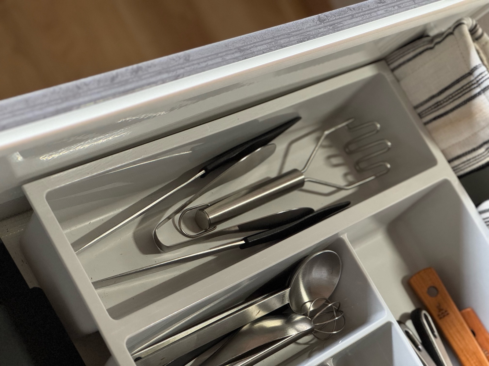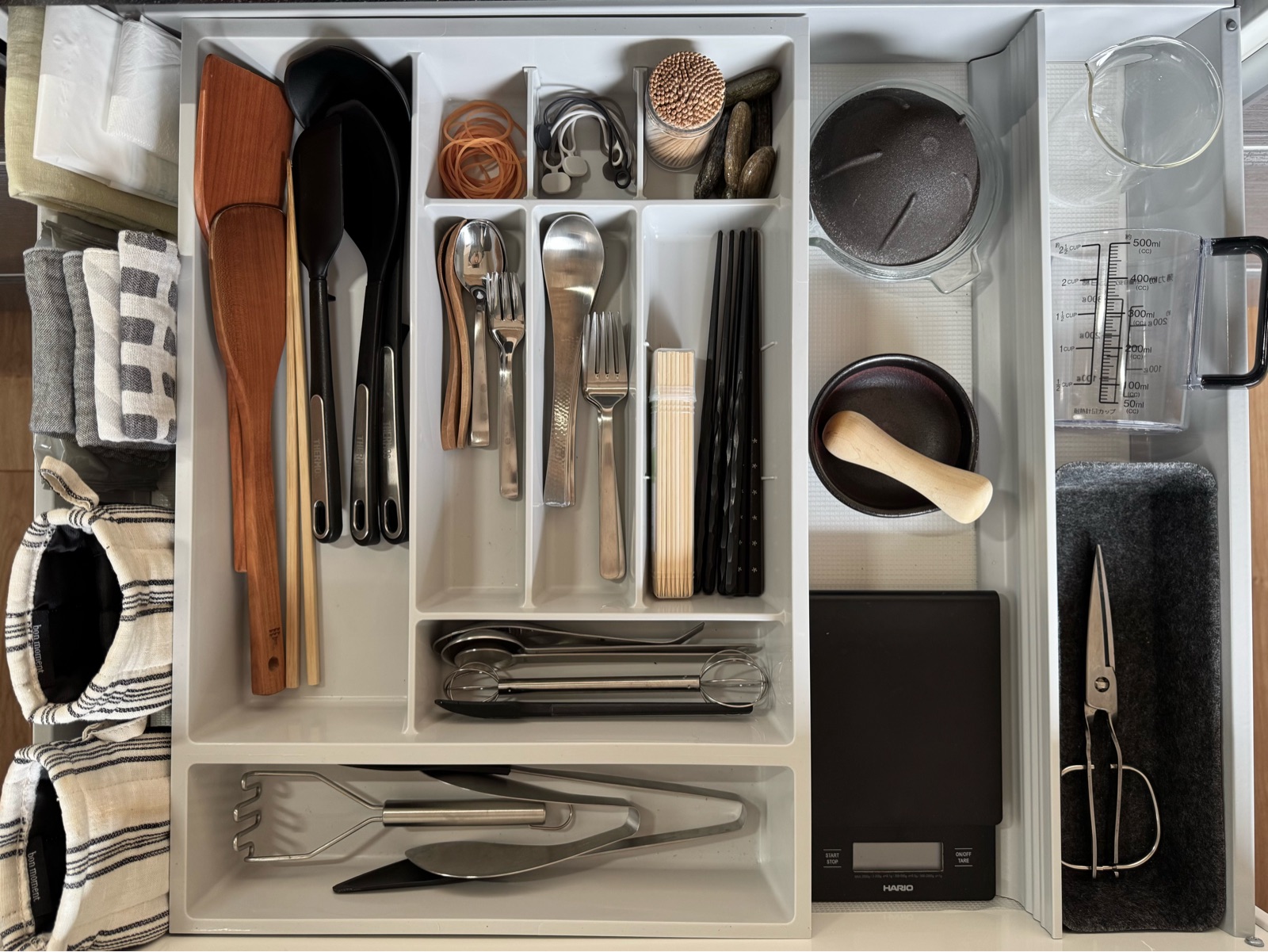 定位置は引出しの手前。一緒に入れているアイテムに引っかかることなくスムーズに出し入れできる。
