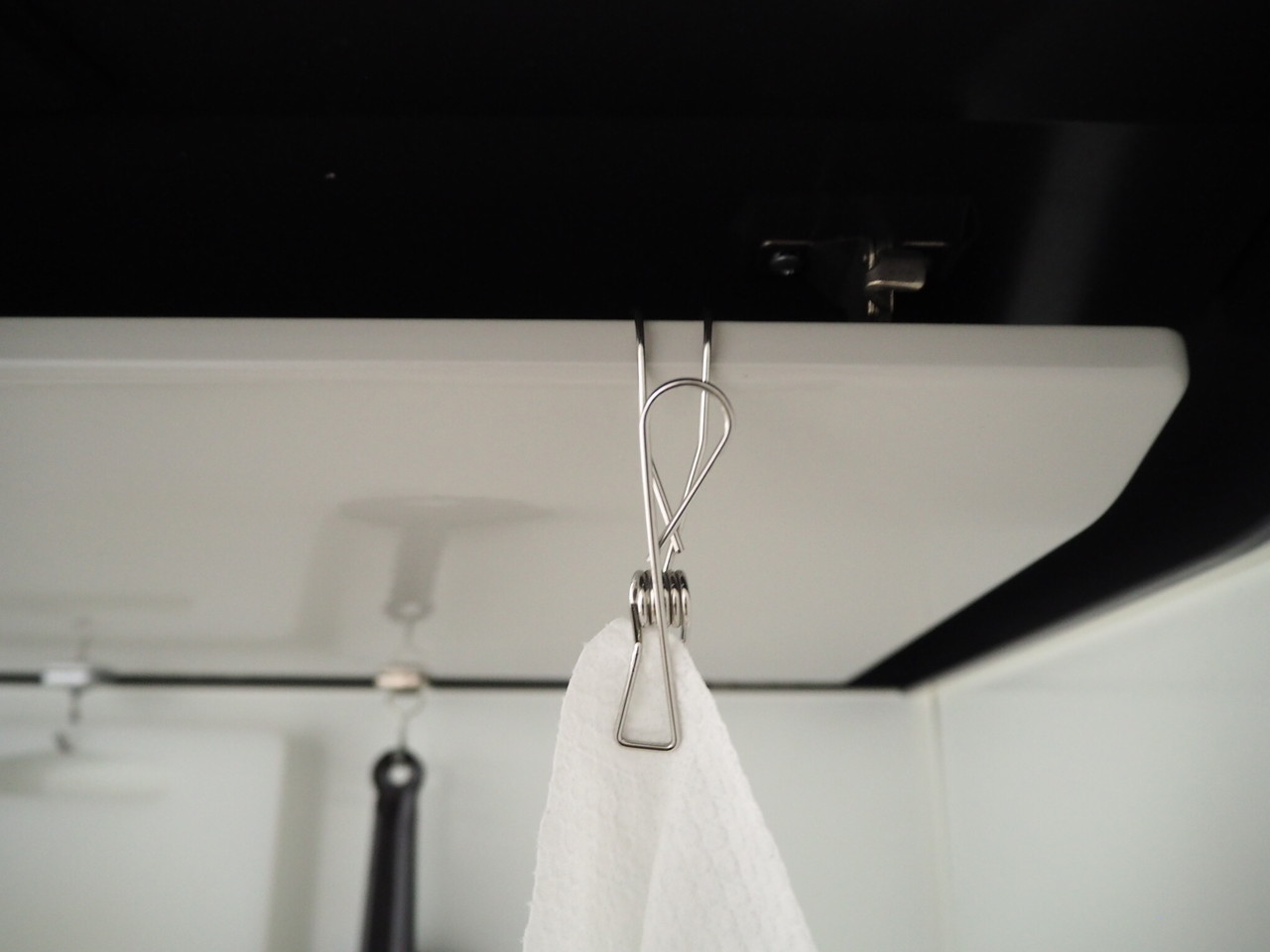 食器を拭いた後のペーパータオルを無印のひっかけるワイヤークリップで干していました。